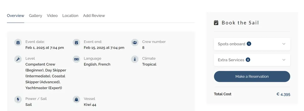 🛈 Note: The Capacity (Crew Capacity) field in the listing entry is customer-facing and indicates the maximum number of customers that could be onboard. It is separate from the Available Spots field, which manages actual availability for booking.