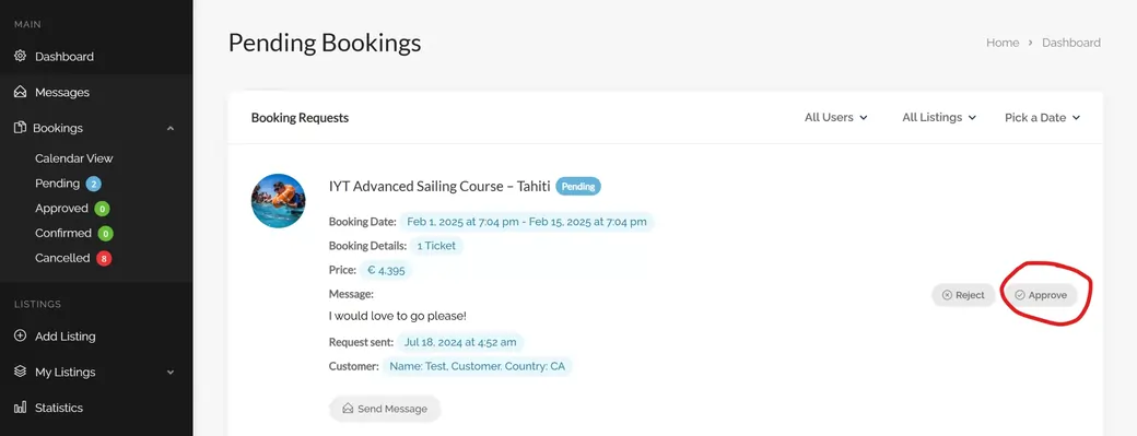 Step 1: Clients Browse Your Listings and Send Booking Requests